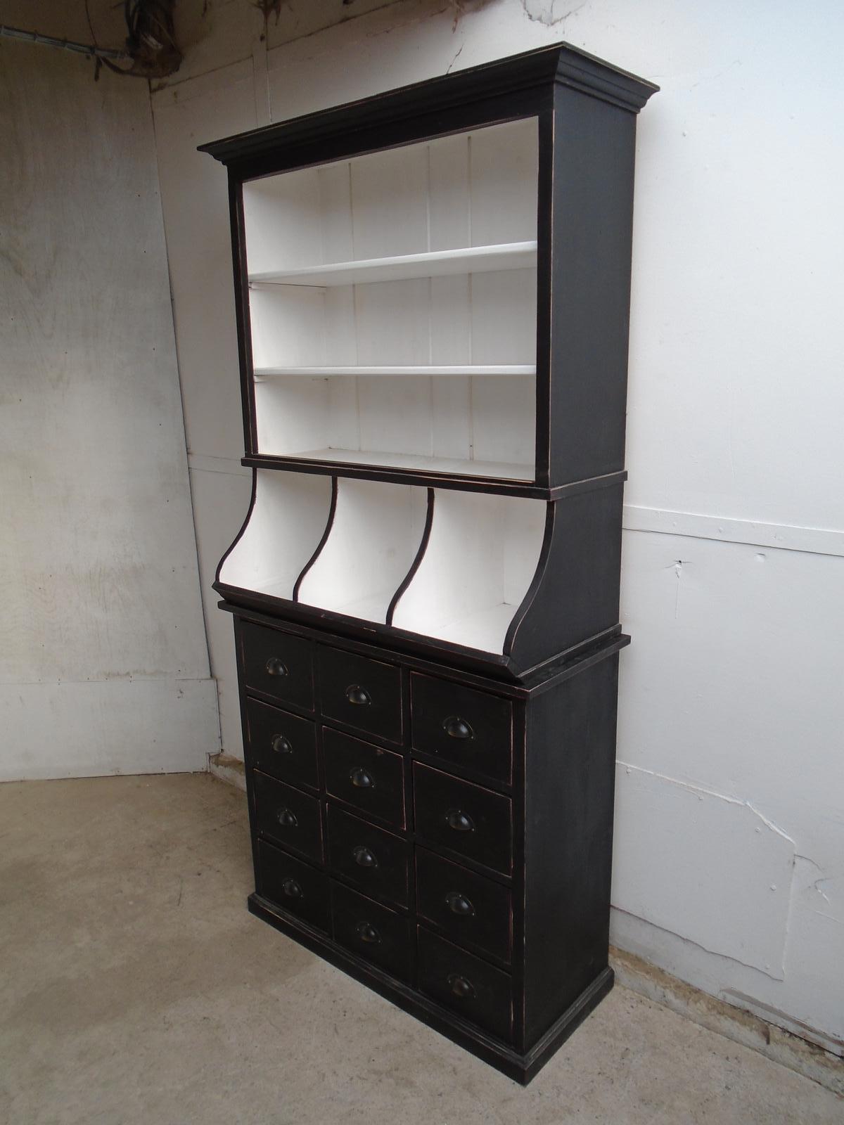 A Lovely Painted Black Pine 12 Drawer Small Shop Fitting / Dresser