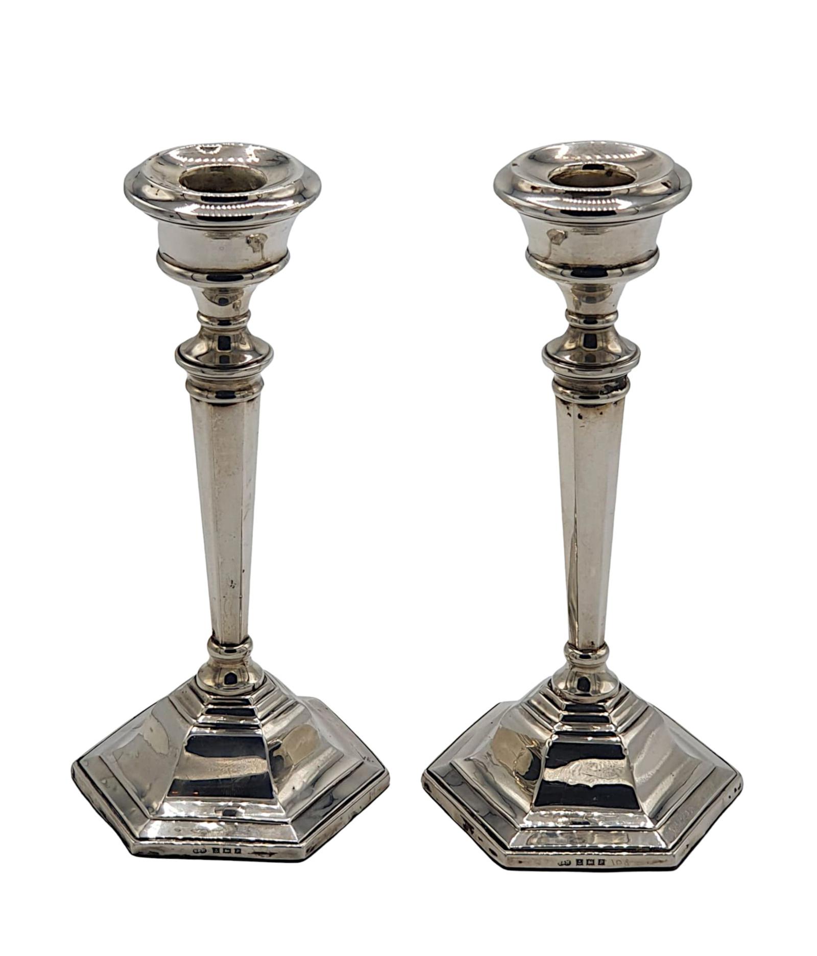 A Lovely Pair of Mid 20th Century Sterling Silver Candlesticks