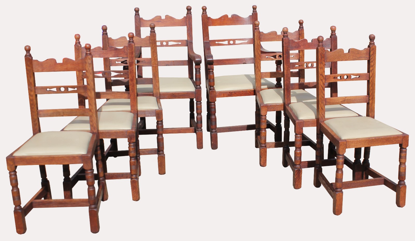 A Lovely Set of Eight Victorian Farhouse Oak Dining Chairs