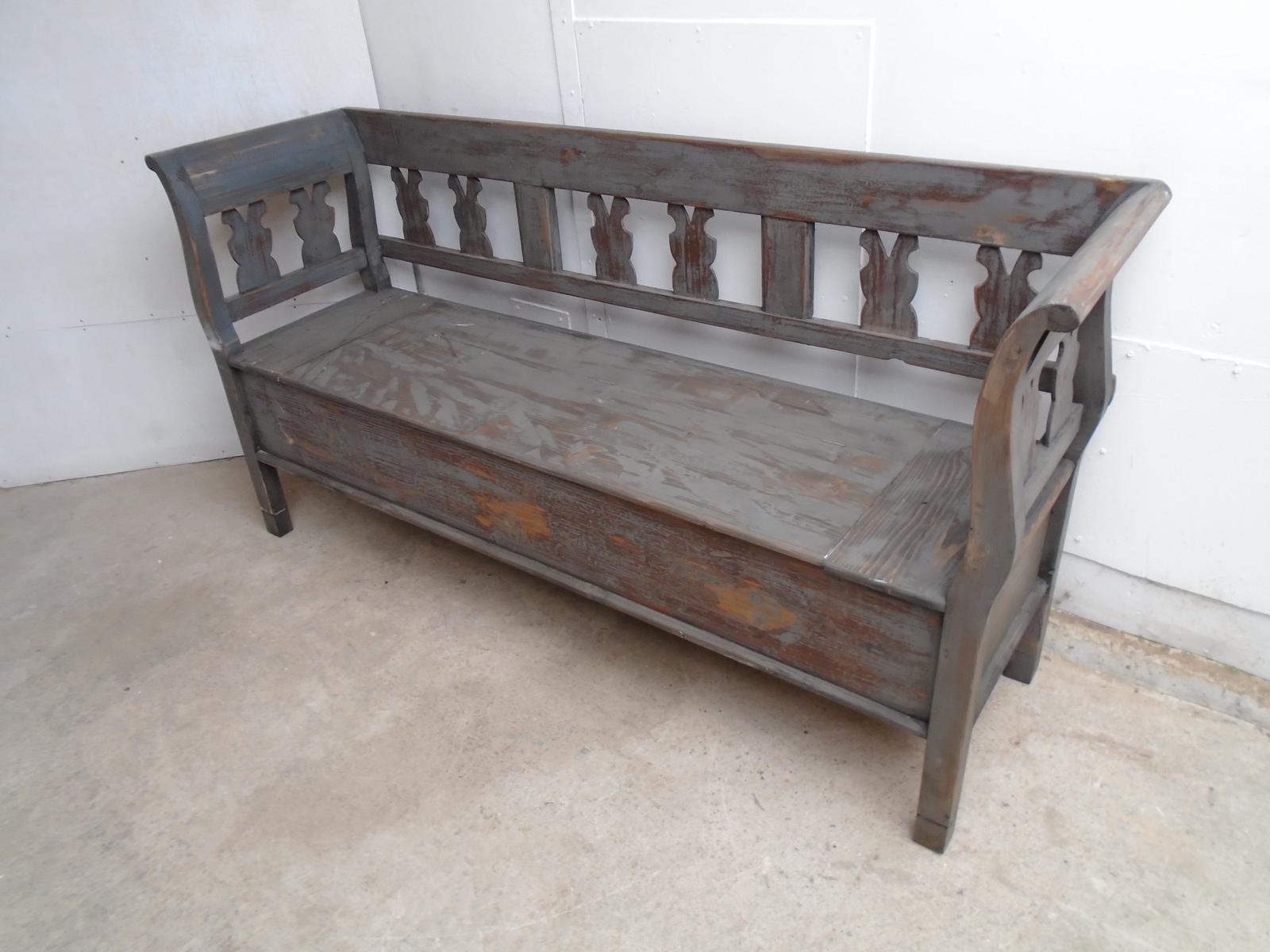 A Lovely Small Painted Grey Antique / Old Pine 3 Seater Box Settle / Bench