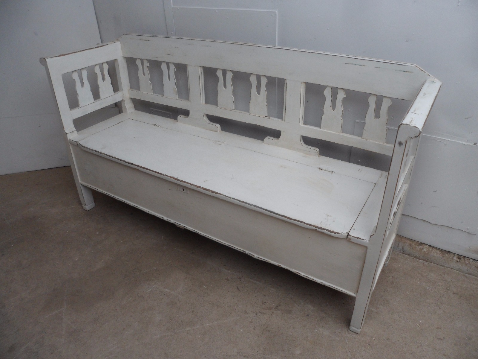 A Lovely Victorian Antique Pine Painted Shabby Chic 2/3 Seater Box Settle/Bench
