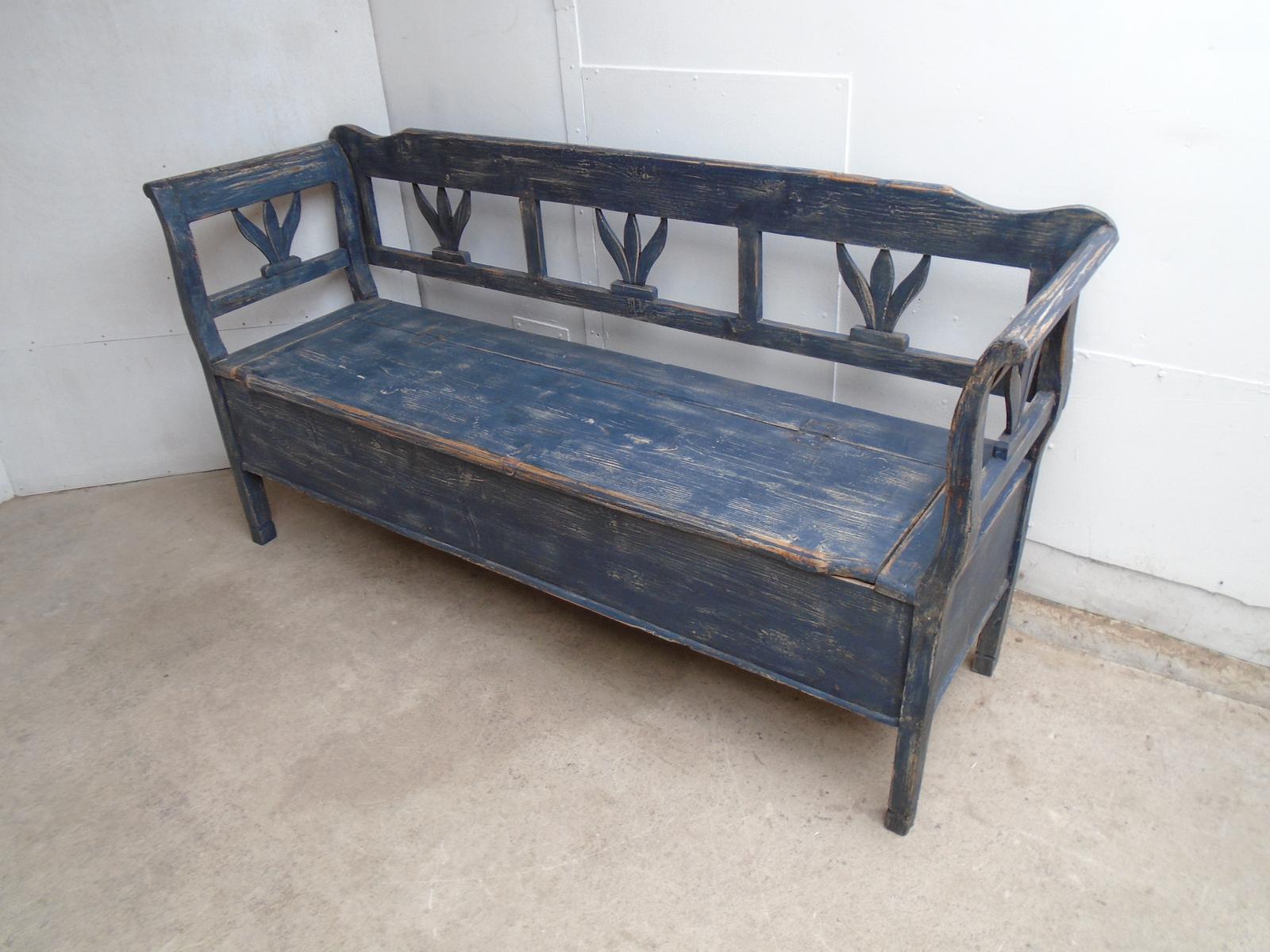 A Lovely Victorian Painted Blue Antique / Old Pine 3 Seater Box Settle / Bench