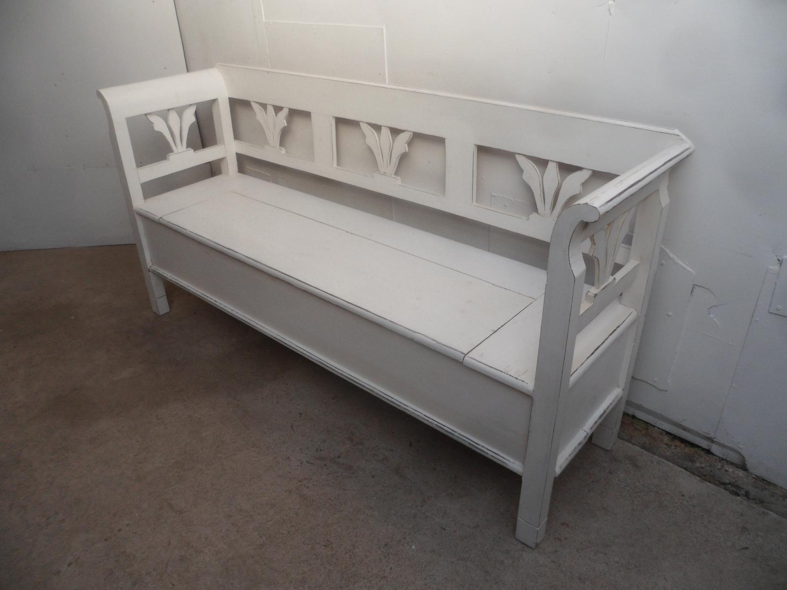 A Lovely White 3 Seater Antique/Old Pine Kitchen/Hall Box Settle/ Bench