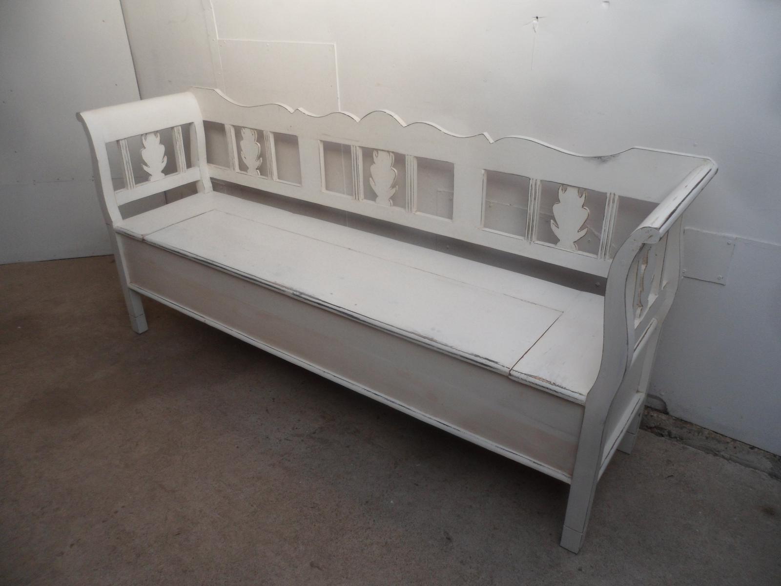 A Lovely White Motif 3/4 Seater Antique/Old Pine Kitchen/Hall Box Settle/ Bench