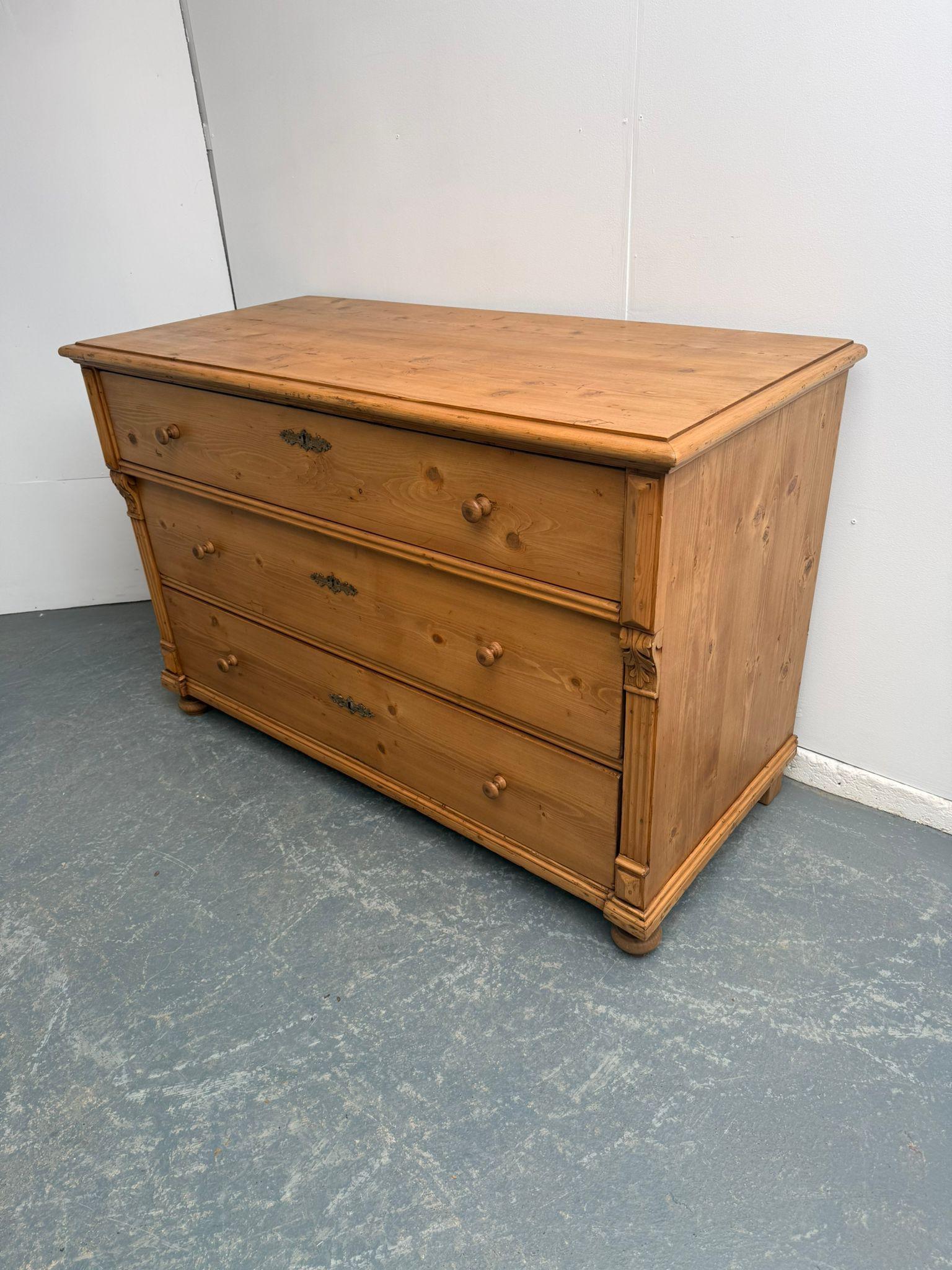 A Low Wide Antique /old Pine Hungarian Victorian Waxed 3 Drawer Chest of Drawers