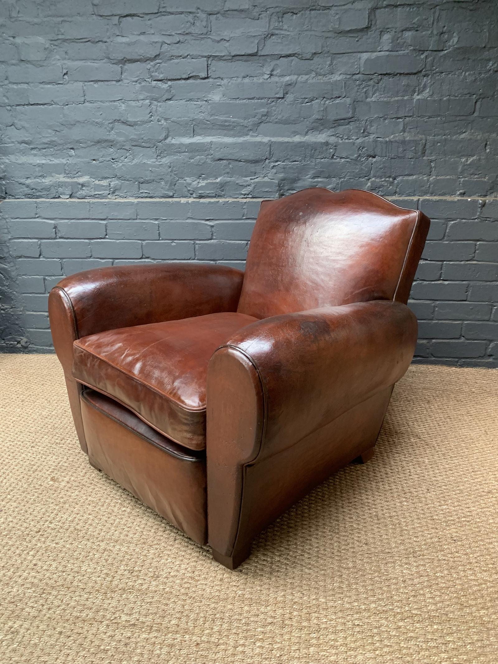 A Magnificent French Leather Club Chair, Havana Moustache Model C1930's