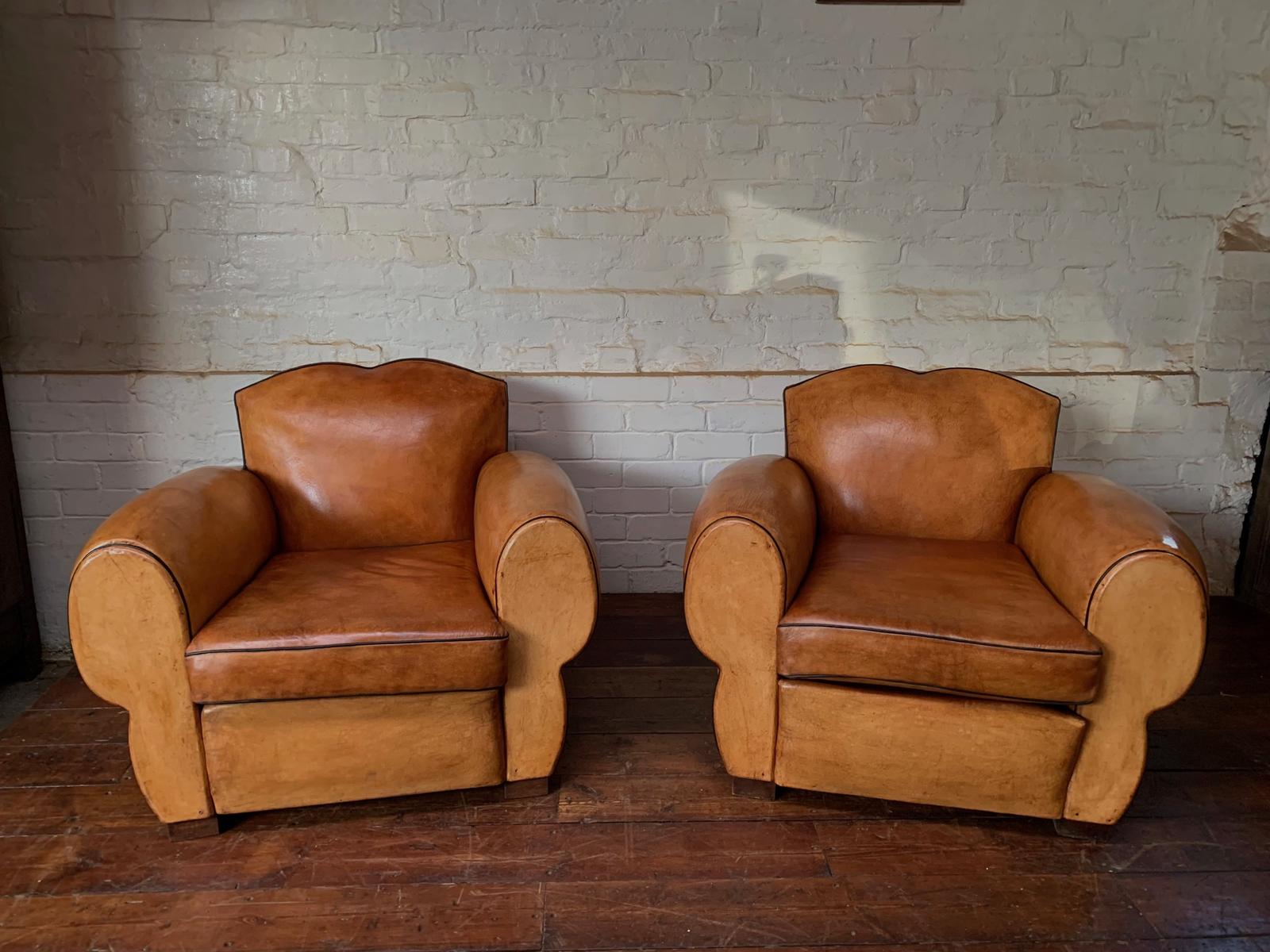A Magnificent Pair of French Leather Club Chairs Caramel Moustache Models, Circa 1950’s (1 of 20)