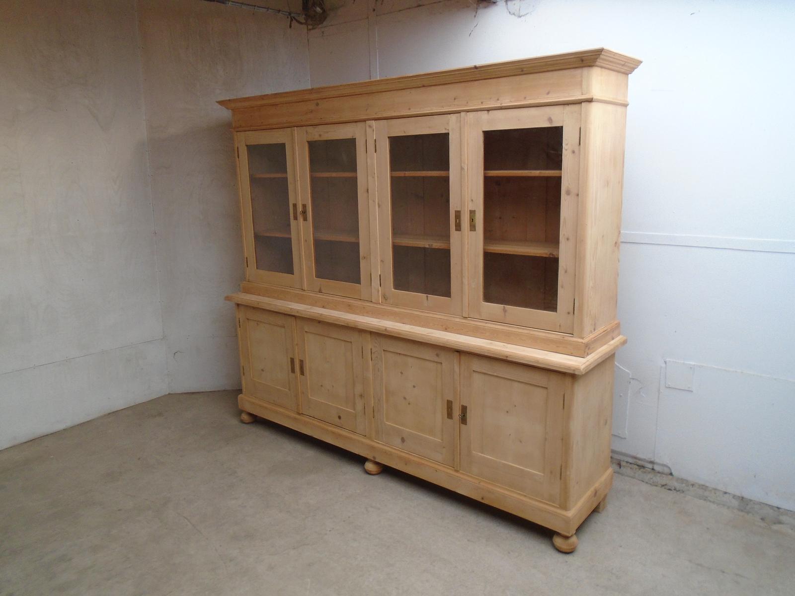 A Massive 4 Door Antique Pine 2 Piece Kitchen Dresser to Wax/Paint