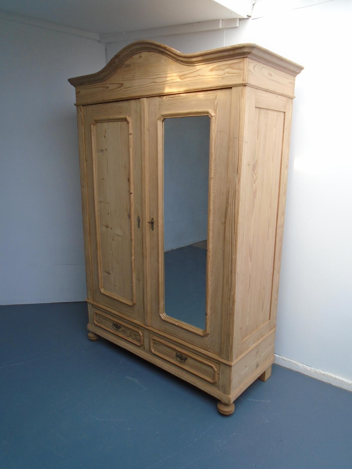 A Mirrored Art Deco Antique/old Pine 2 Door Knockdown Wardrobe to Wax/paint
