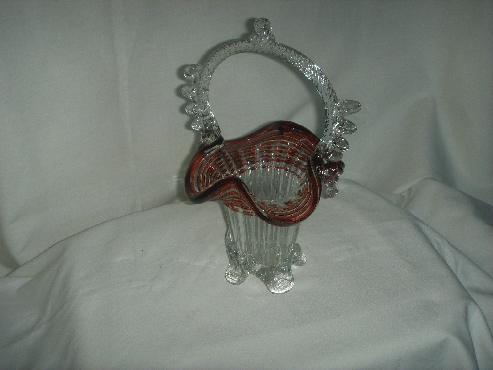 A Most Beautiful Piece of a Master Glass Maker. Cranberry / Clear Glass Basket