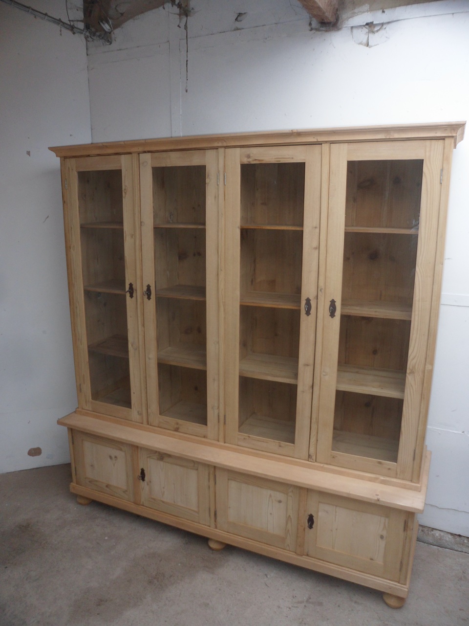 A Most Stunning 8 Door Large 2 Piece Pine Bookcase / Kitchen Dresser