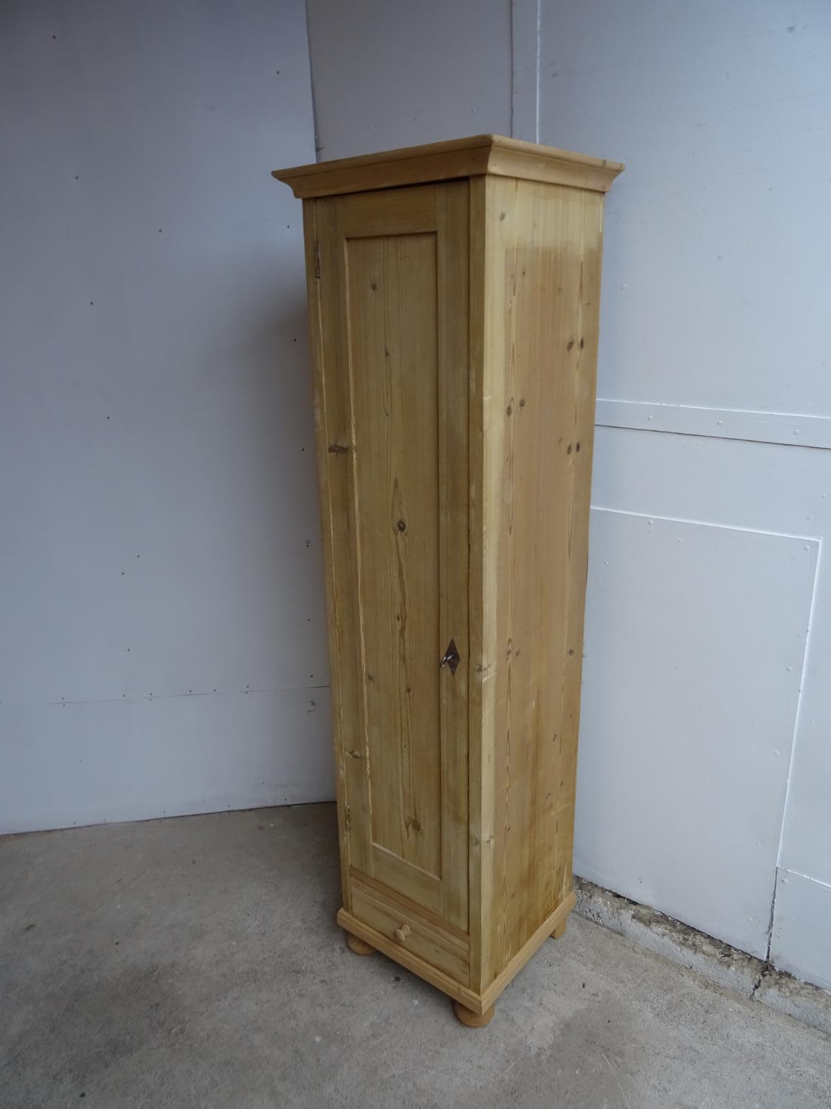 A Narrow Antique/old Pine 1 Door 1 Drawer Kitchen Storage Cupboard to Wax/paint