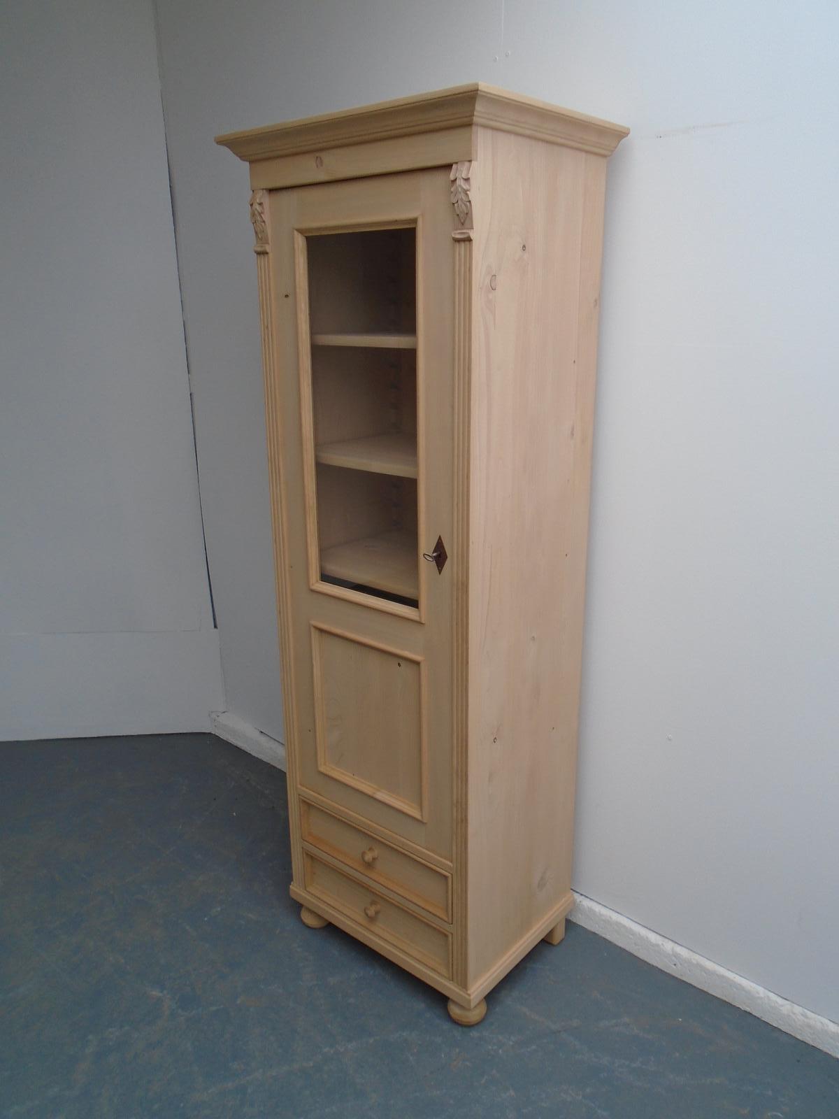 A Narrow Pine Glazed Kitchen / Bathroom Cabinet to Wax / Paint