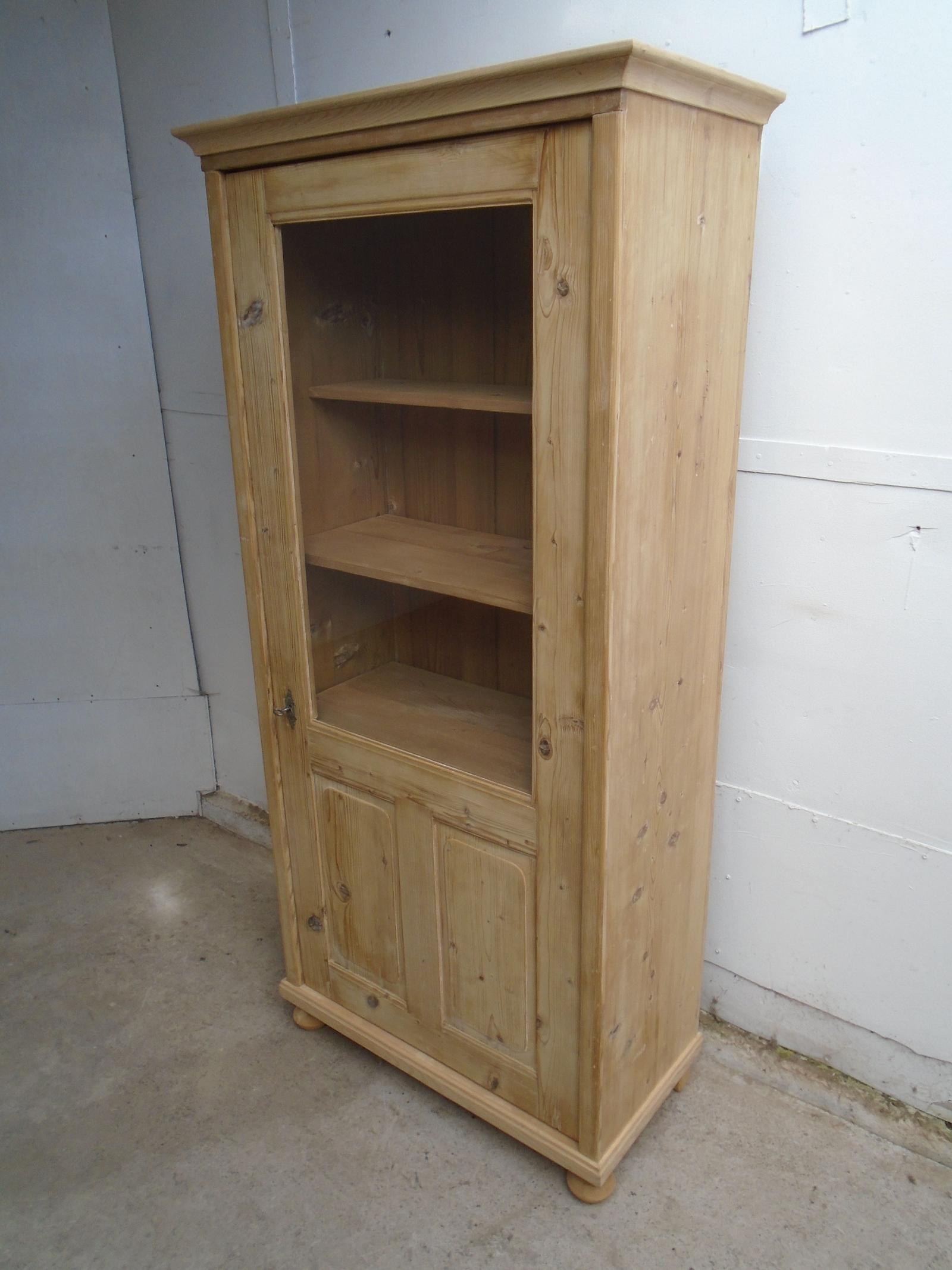 A Narrow & Shallow 1 Door Antique/Old Pine Display Cabinet to Wax/Paint