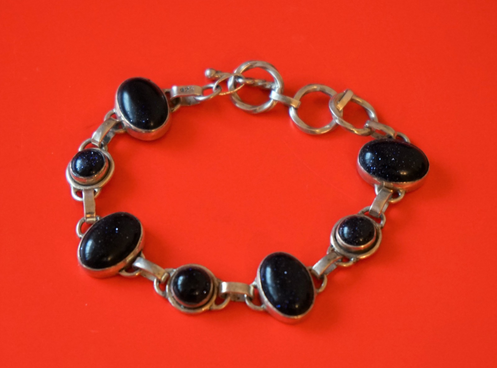 A New Old 925 Sterling Silver Purple Sparkle Cabochon Gem Set Bracelet - Boxed (1 of 7)