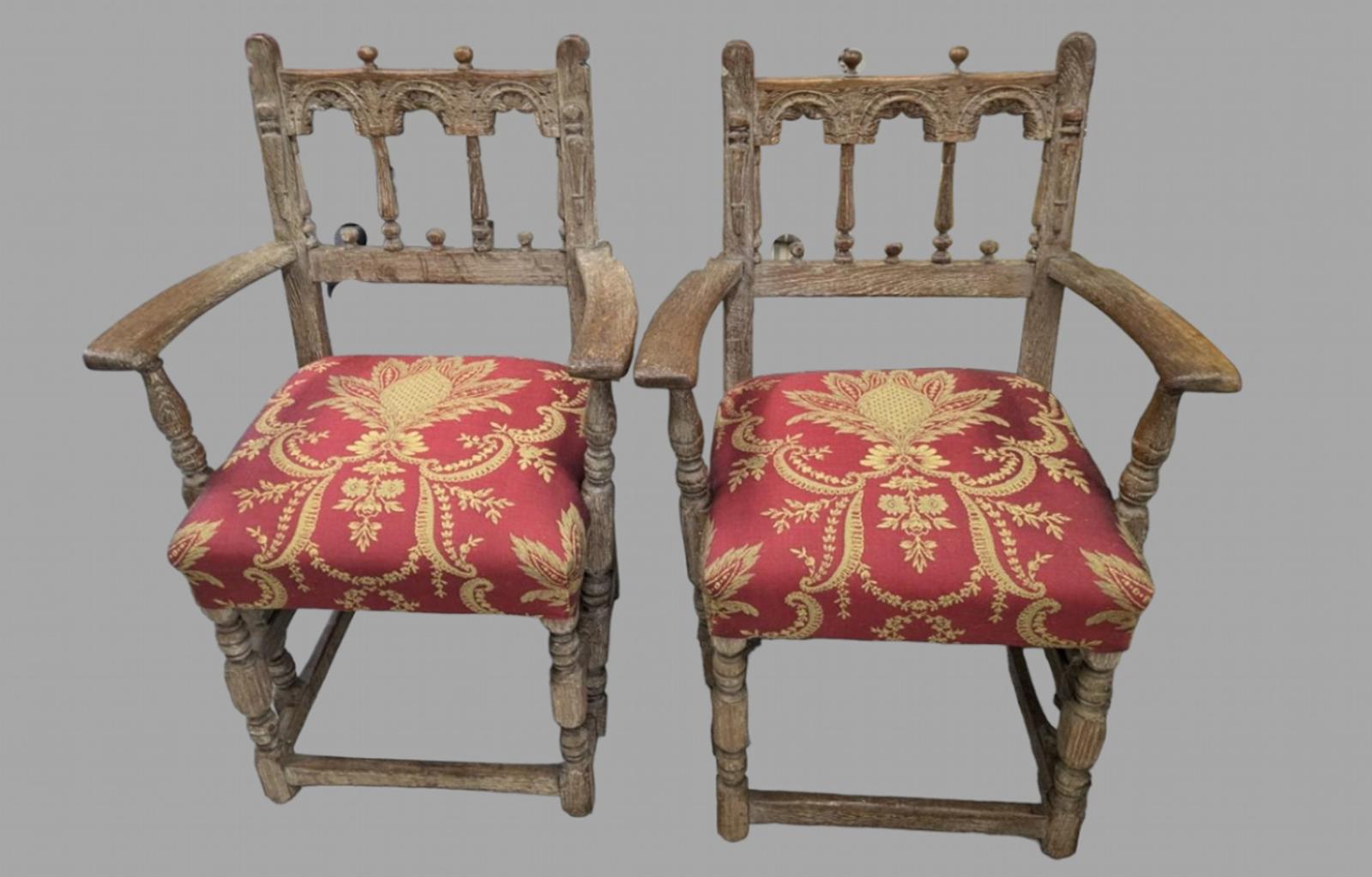 A Pair of 19thc Oak Gothic Revival Style Side Chairs (1 of 4)