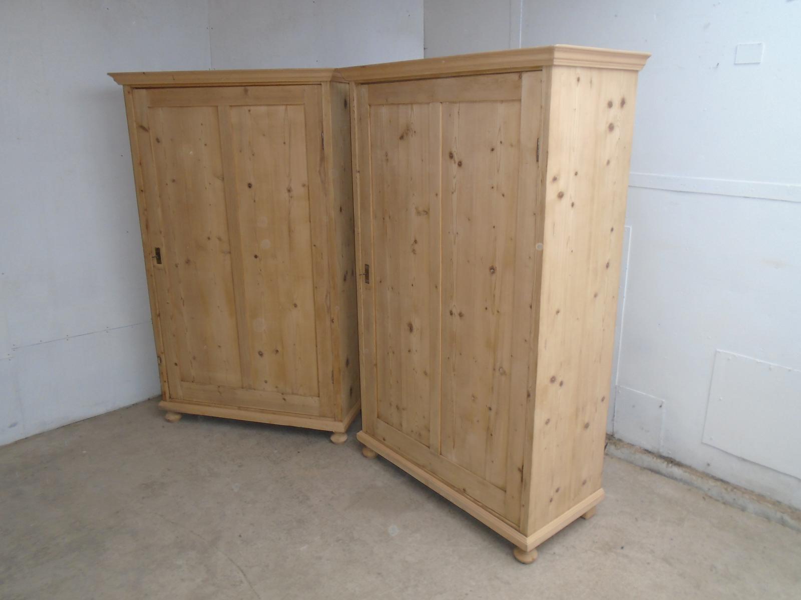 A Pair of Antique / Old Pine 1 Piece Children's Wardrobes to Wax / Paint