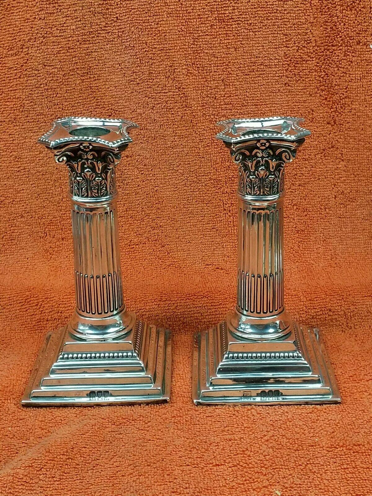 A Pair of Antique Sterling Silver Hallmarked 1895 Candle Sticks