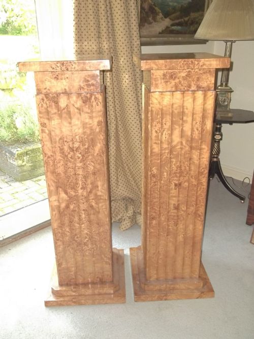 A Pair of Art Deco Burr Walnut Column Pedestals