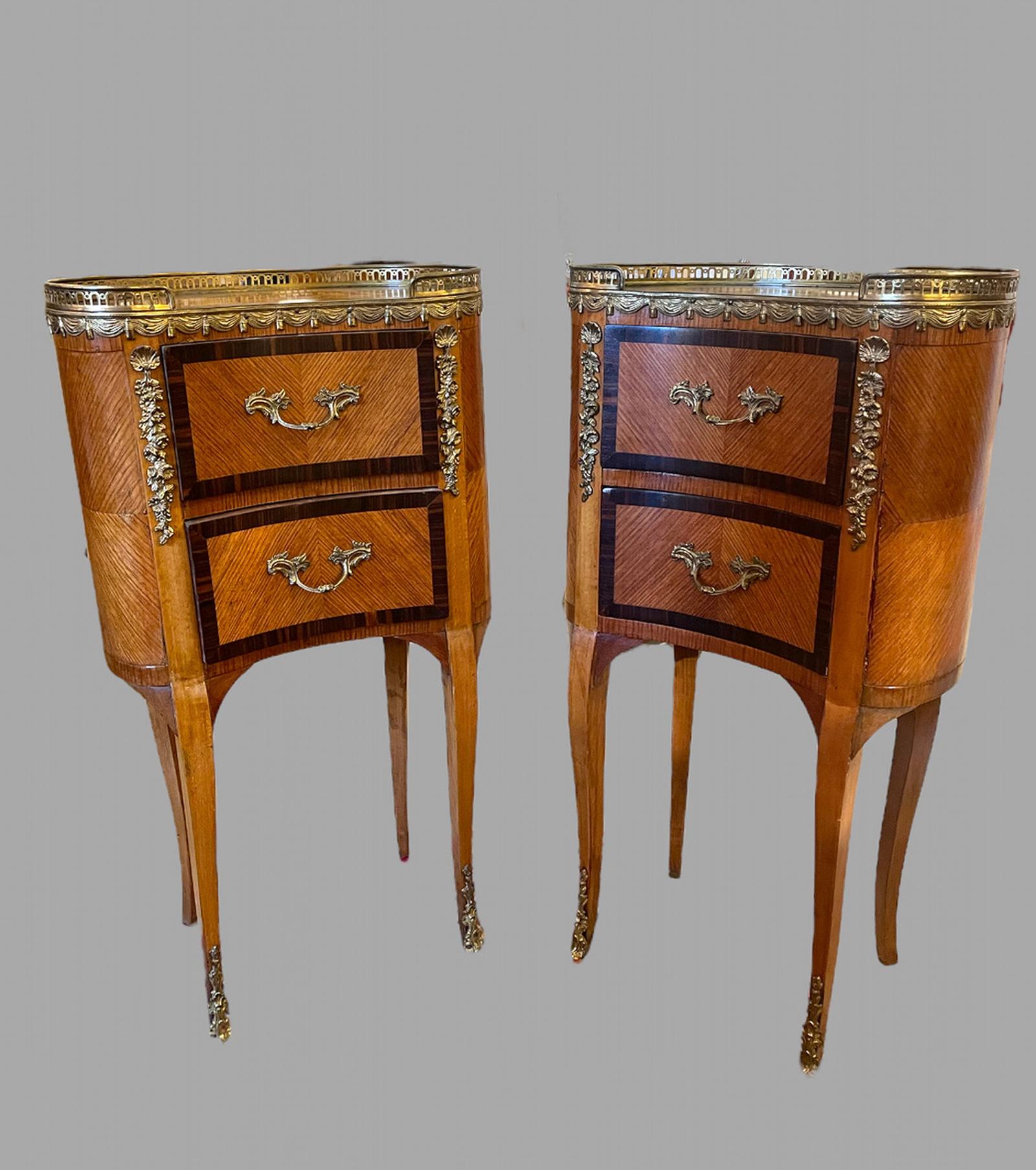 A Pair of Attractive 19thc Marquetry Bedside Tables