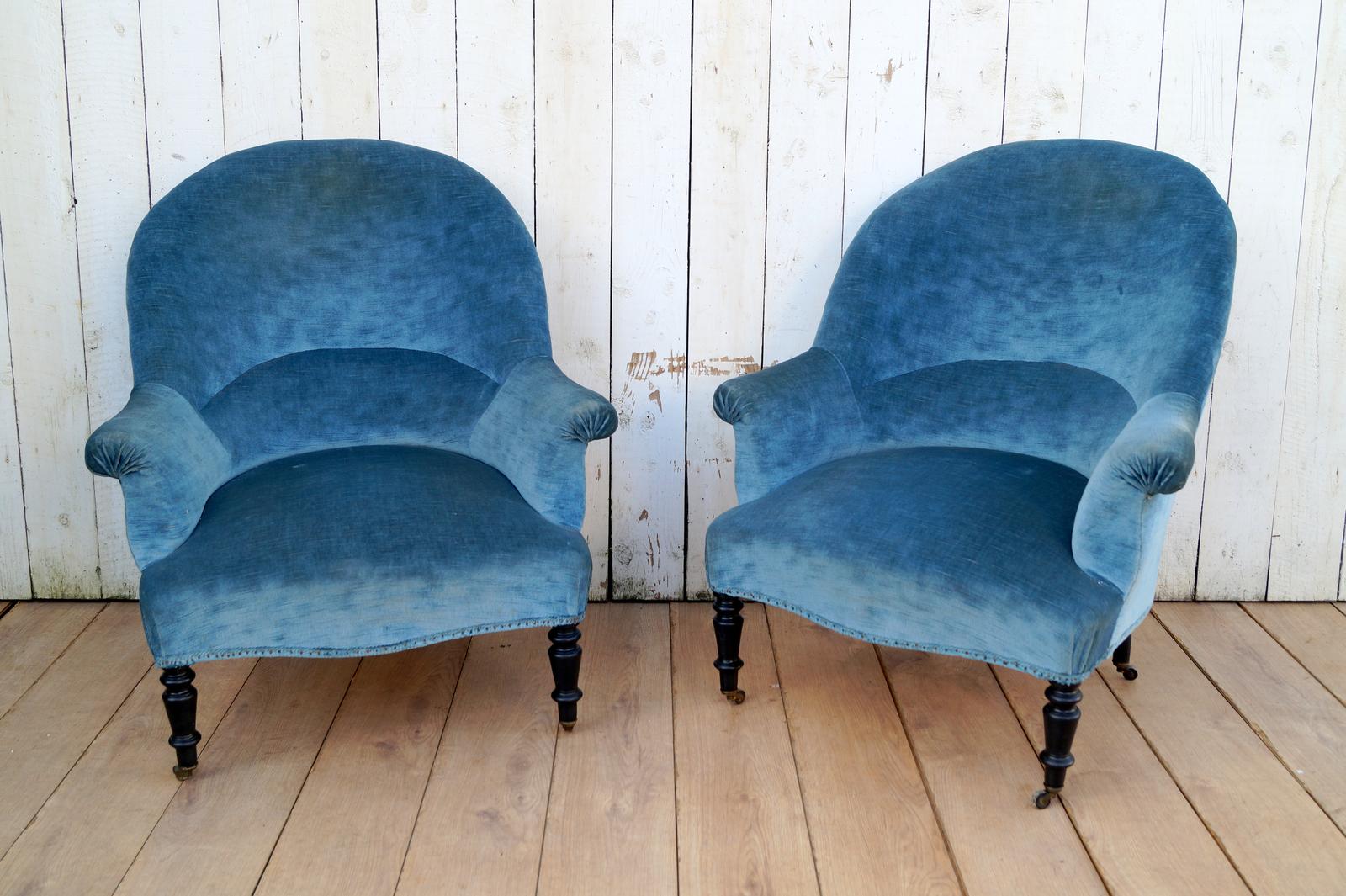 A Pair of Blue French Antique Armchairs (1 of 8)