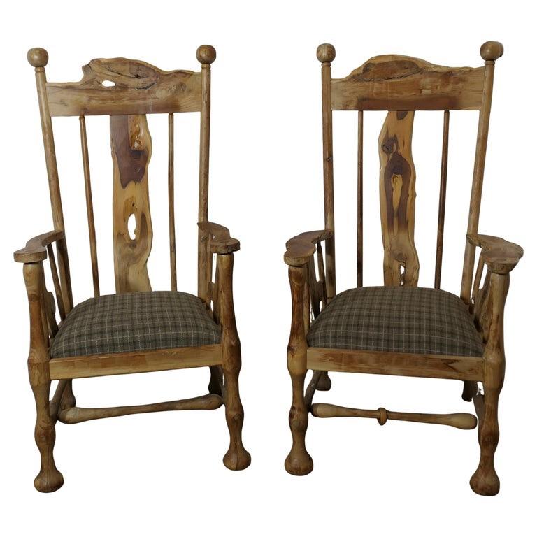 A Pair of Carved Live Root Fireside Chairs, His and Her’s