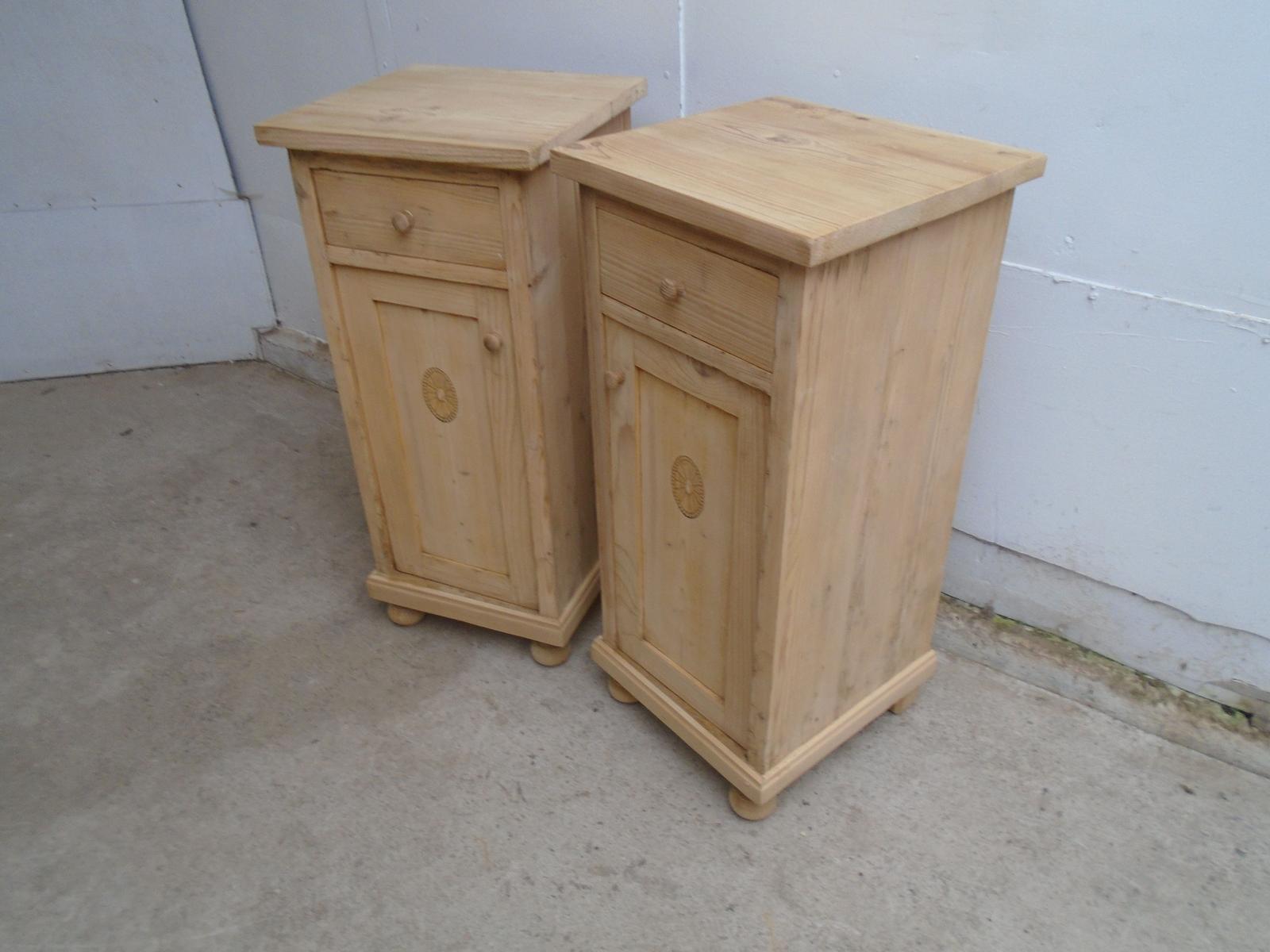 A Pair of Carved Motif Antique Victorian Pine Bedside Cabinets to Wax / Paint