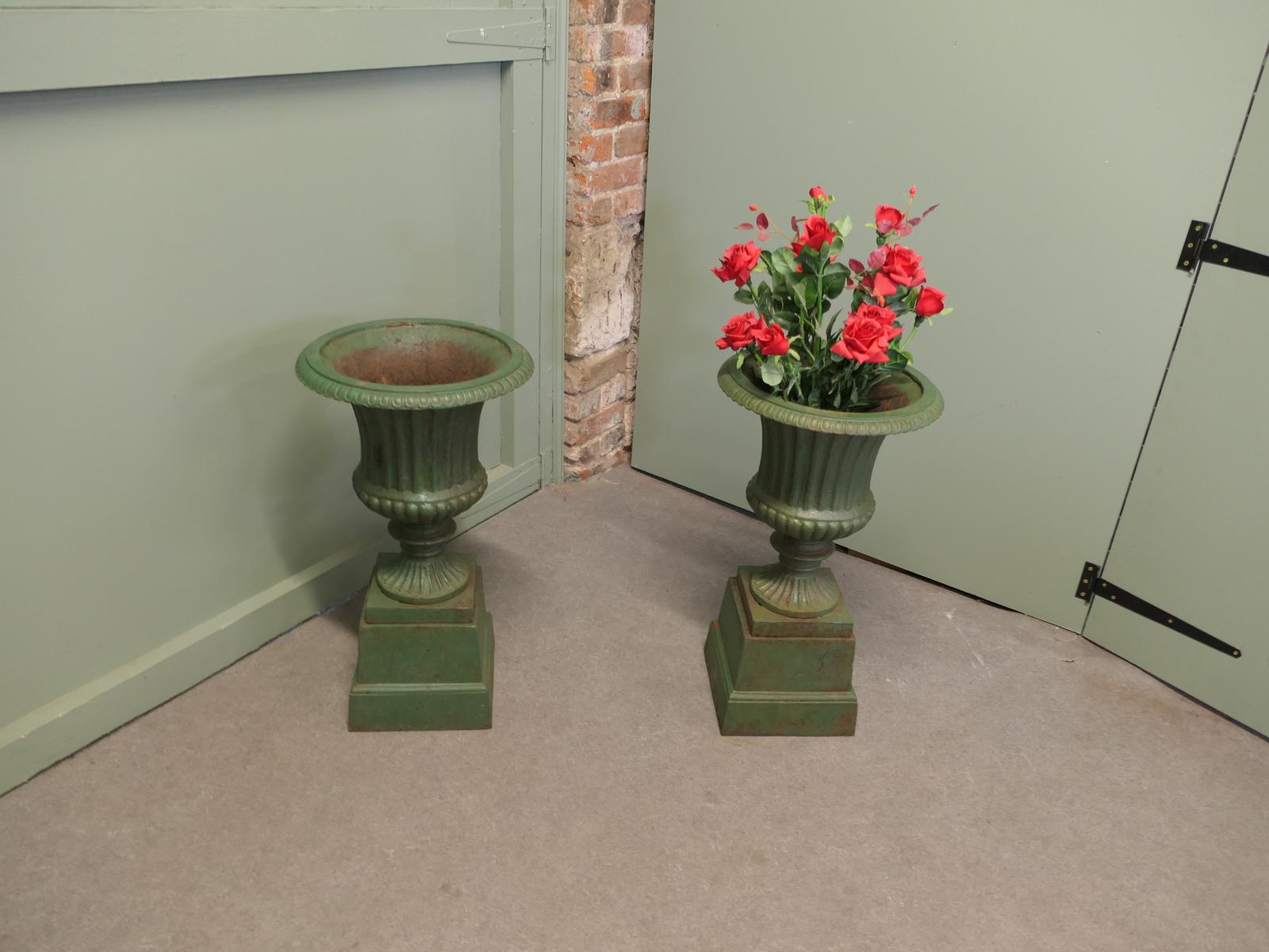 The urns and stands are in good slightly weathered condition they are a little weather worn but the green paint has protected them from the elements