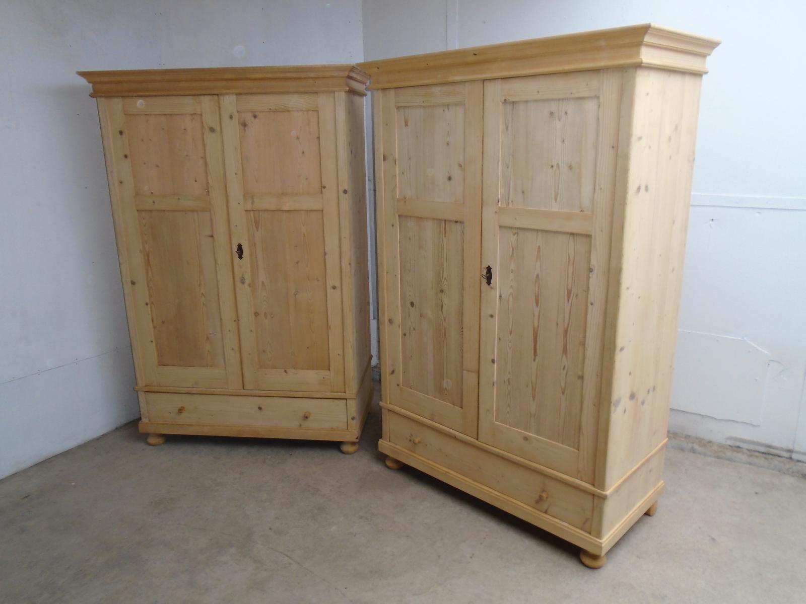 A Pair of Classic Panelled Antique / Old Pine Knockdown Wardrobes to Wax / Paint