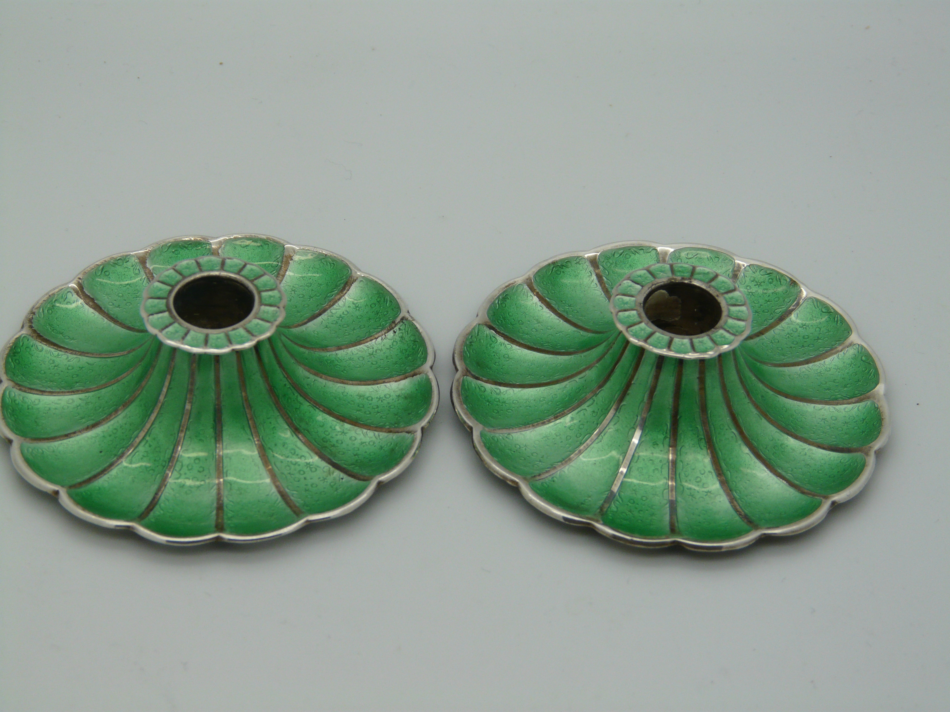 A Pair of Danish Meka Sterling & Enamel Candlesticks Holders