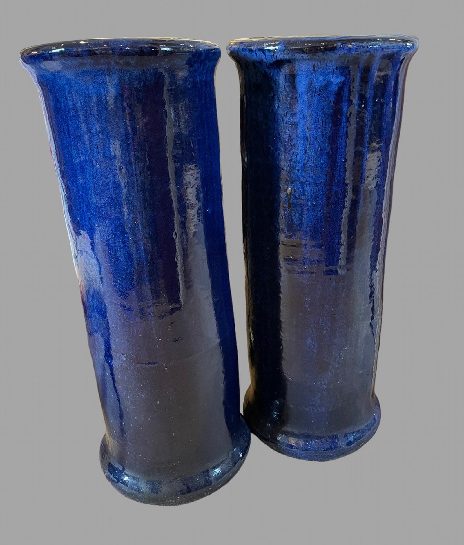 A Pair of Decorative Blue/grey Pottery Pedestals