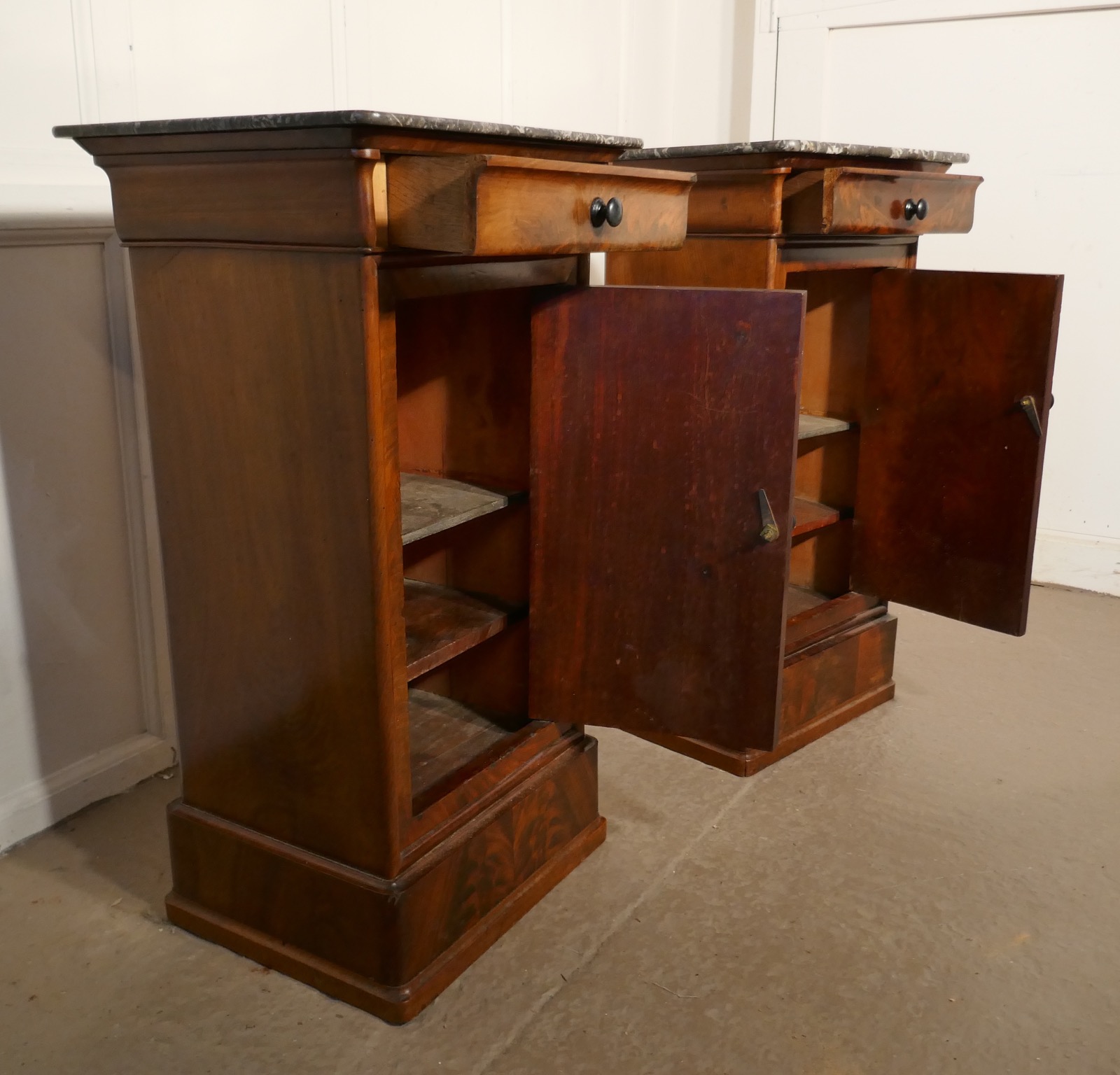 A Pair of Figured Mahogany Bedside Cupboards