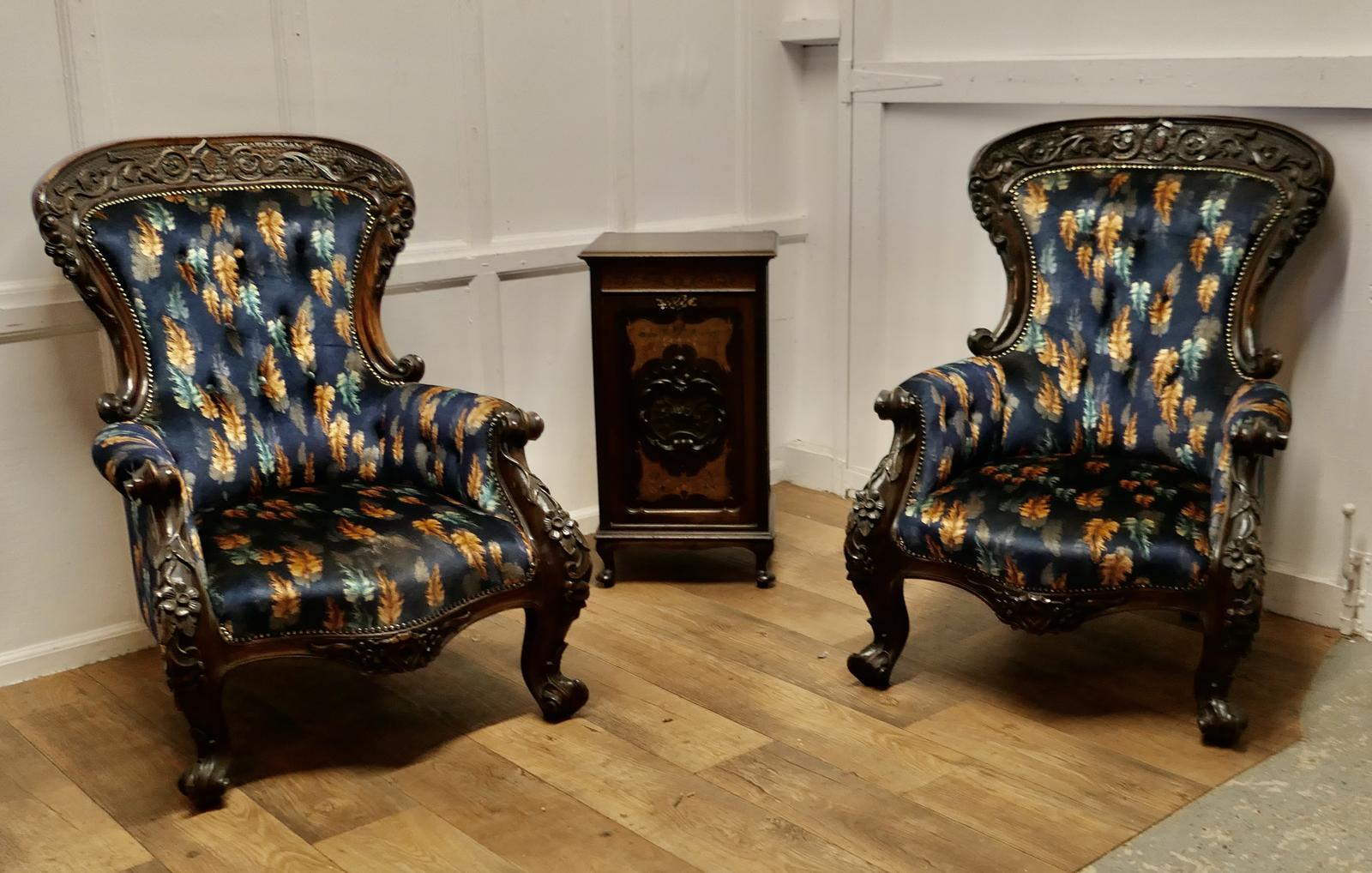 A Pair of Large Franco Chinese Carved Salon Chairs