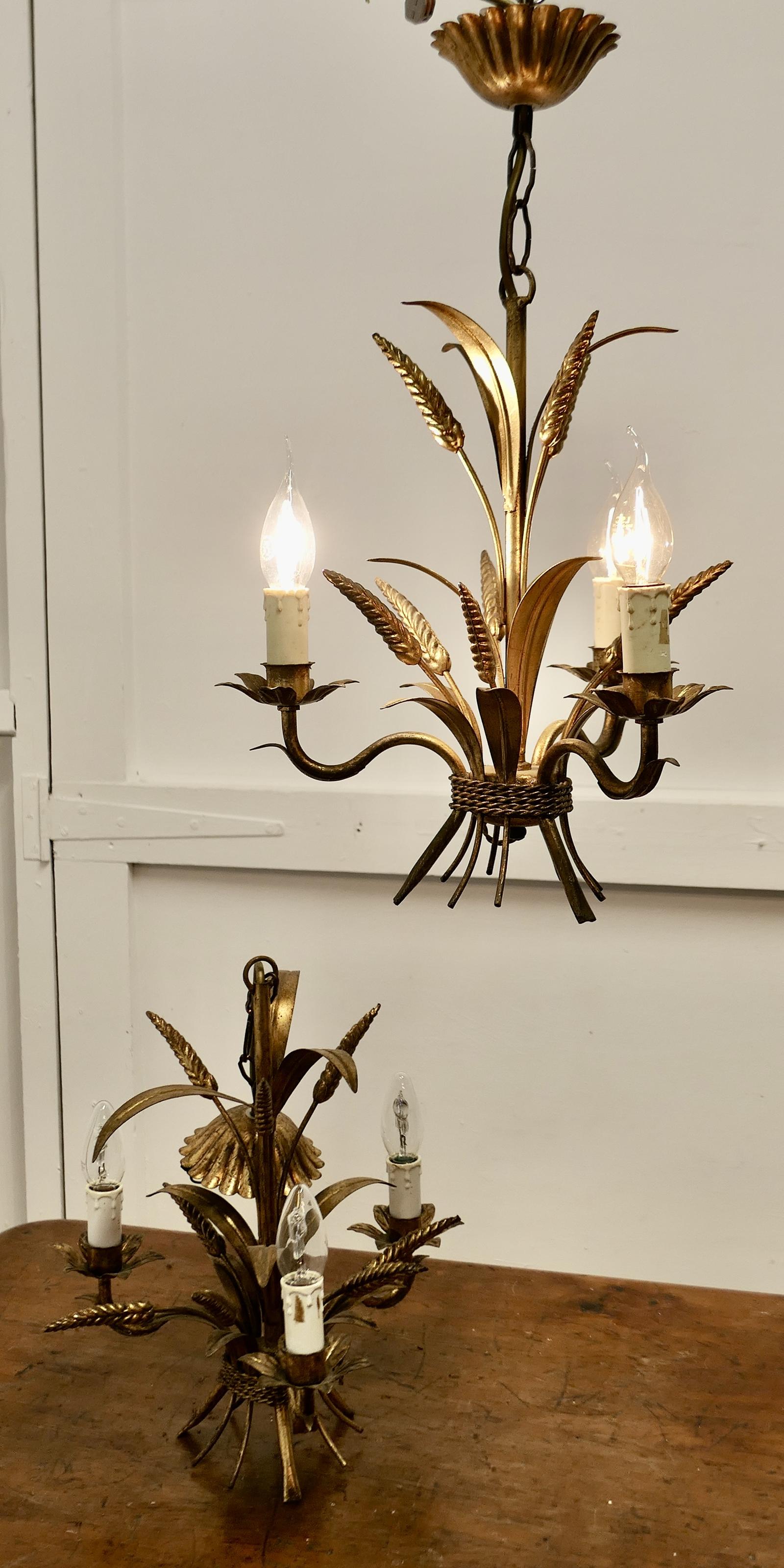 A Pair of Matching French Toleware Gilded Pendant Lights