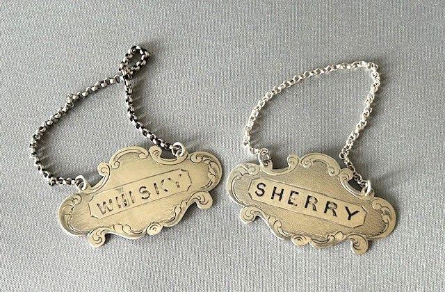 A Pair of Nathaniel Mills Silver Decanter Labels