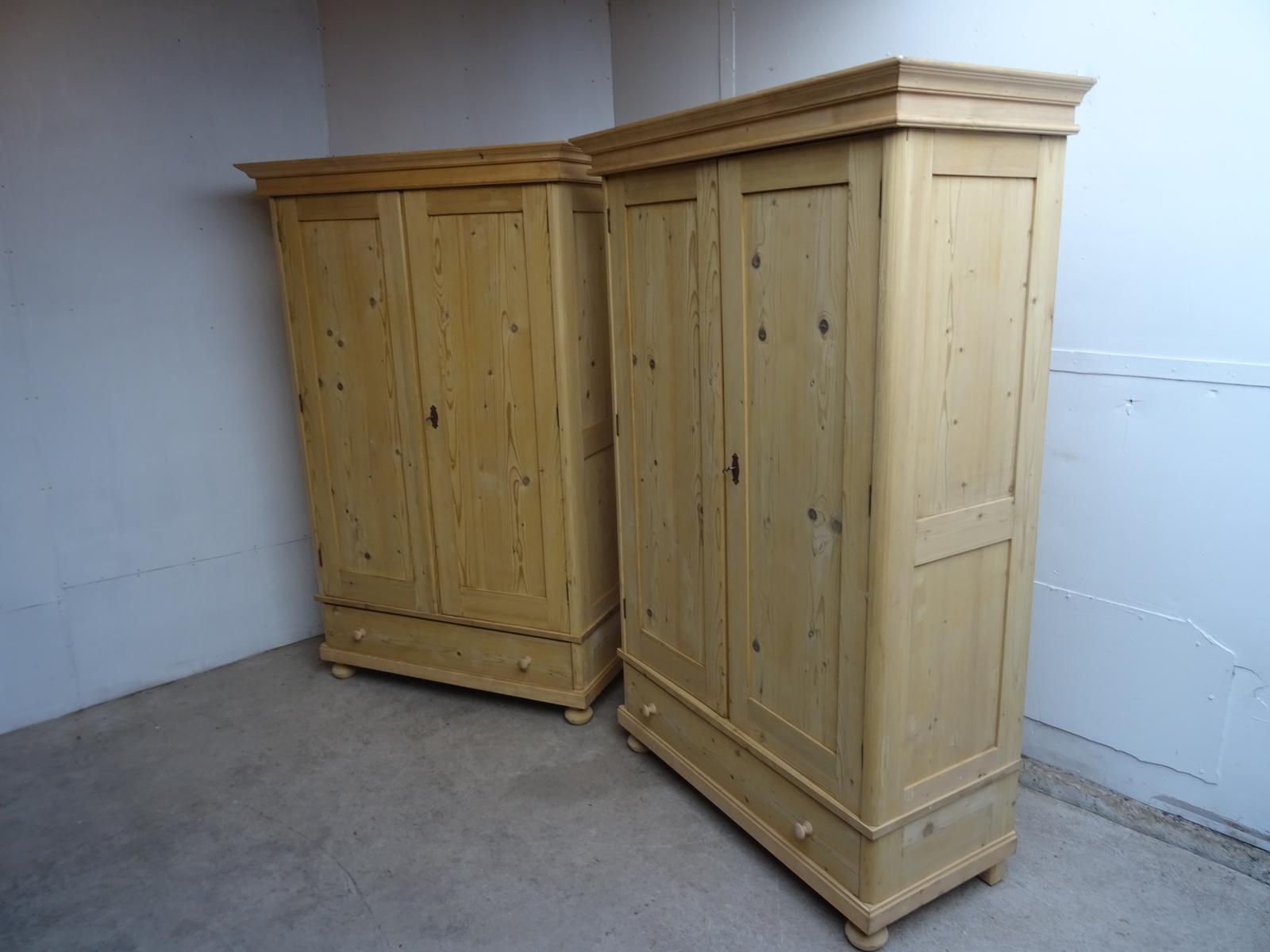 A Pair of Panelled Antique / Old Pine Knockdown Wardrobes to Wax / Paint