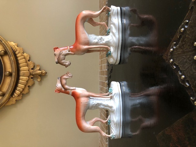 A Pair of Staffordshire Greyhounds , Hunting Dogs with Prey