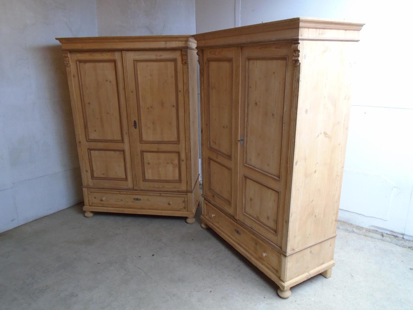 A Pair of Victorian Antique Pine Knockdown Wardrobes to Wax / Paint