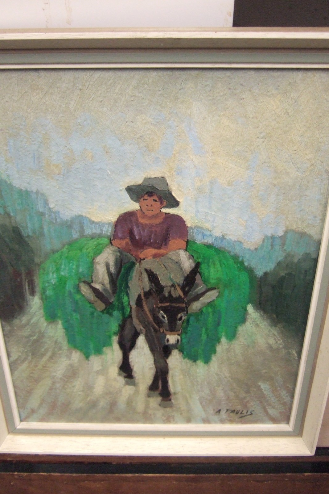A Paulis - Oil on Board Painting of 'A Mediterranean Farmer on his Donkey' 1960 entitled "Il Camino" (1 of 1)
