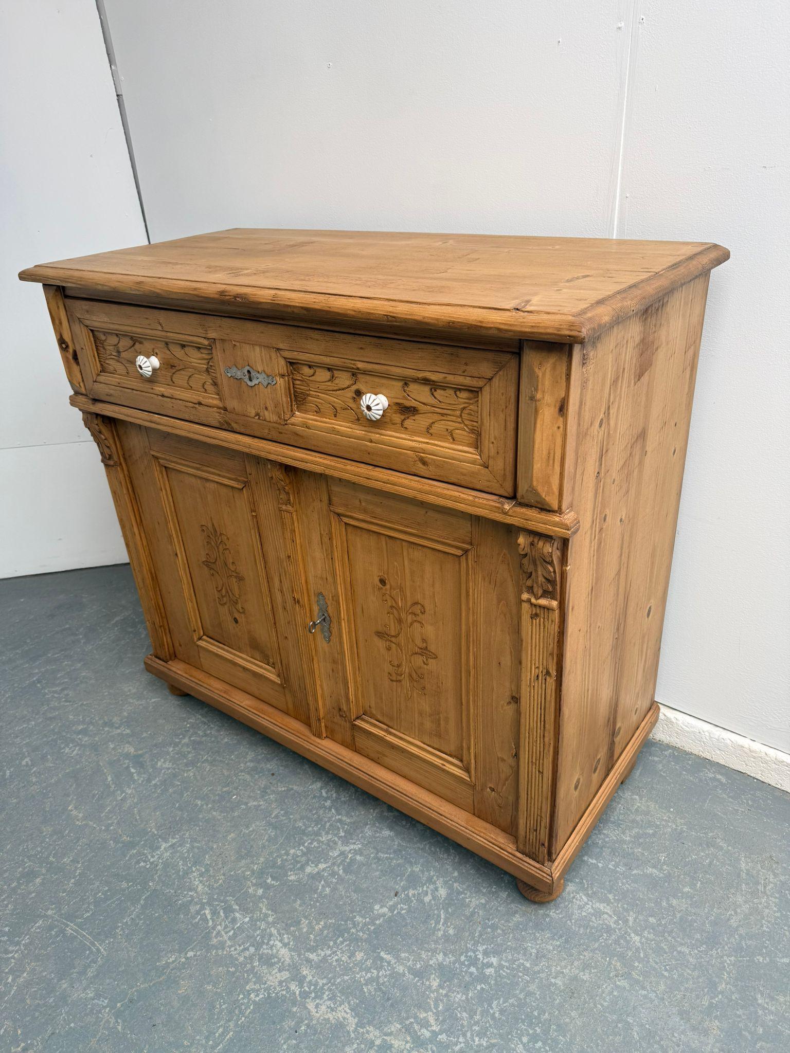 A Pretty Antique / Old Pine Victorian Waxed Carved Kitchen Dresser Base
