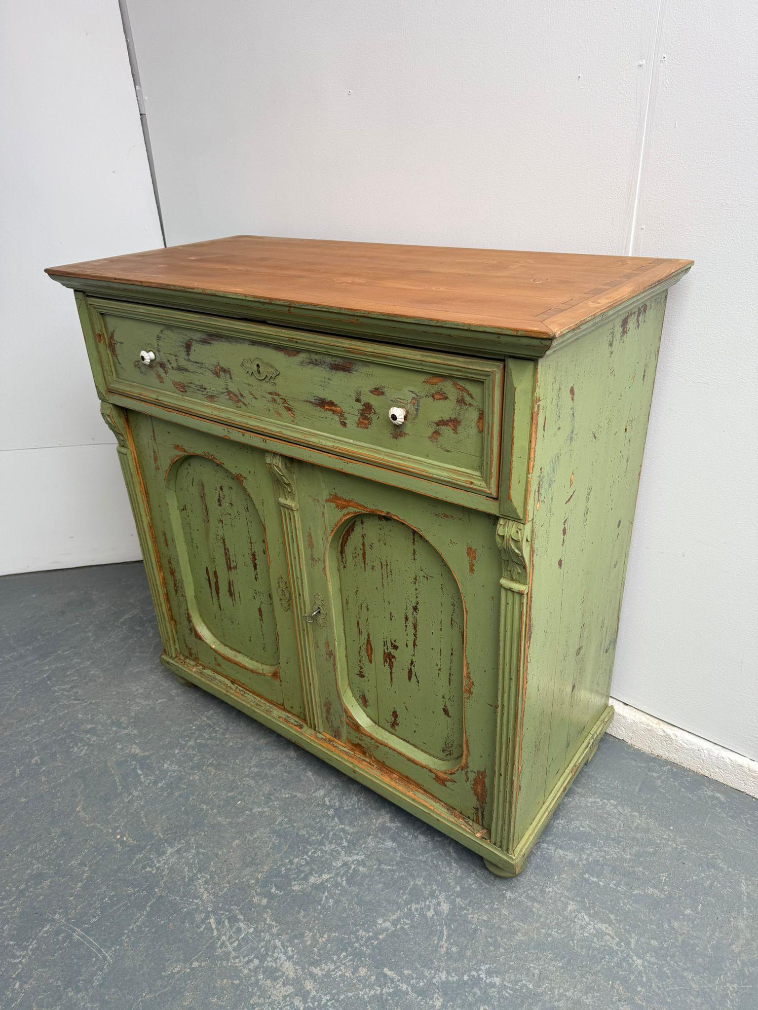 A Pretty Originally Painted Hungarian Light Green 2 Door Shallow Dresser Base