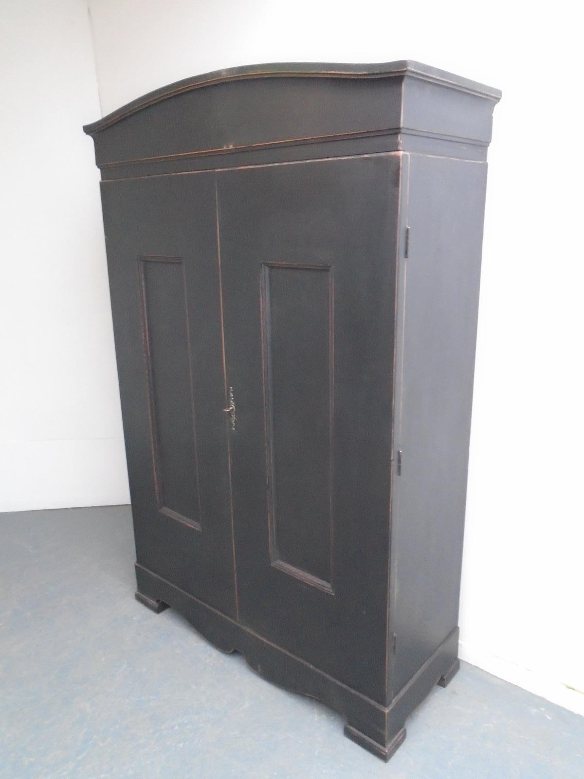 A Pretty Painted Black 2 Door Georgian Antique / Old Pine Child / Hall Wardrobe
