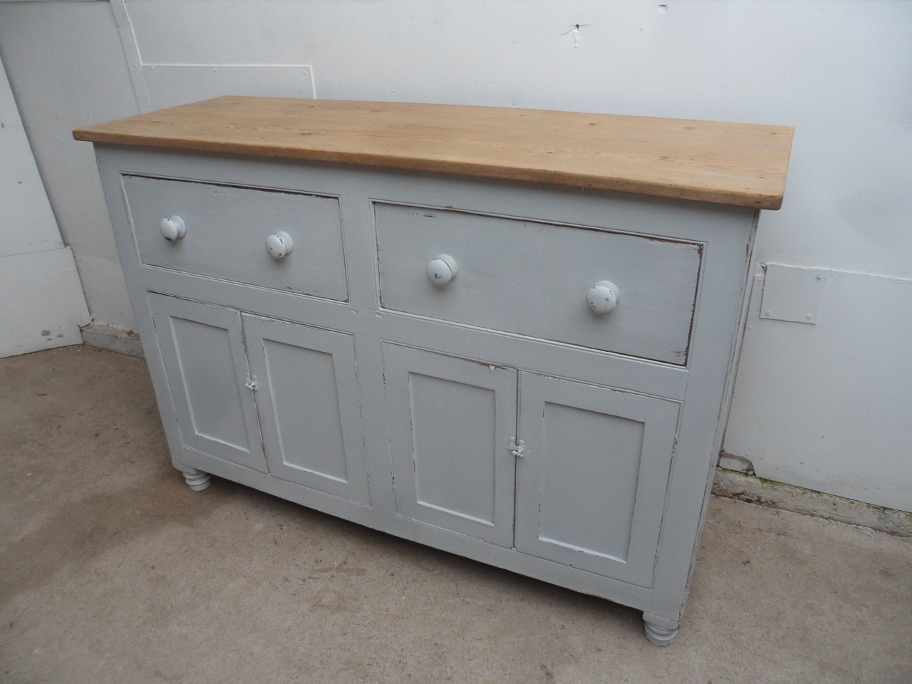 A Quality English Victorian Painted Shabby Chic 4 Door Dresser Base /Sideboard
