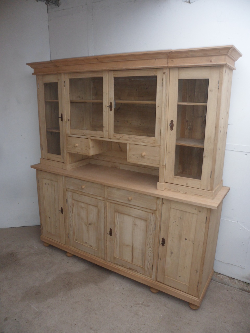 A Quality Large 4 Door 2 Piece Glazed Pine Kitchen Dresser to Wax / Paint