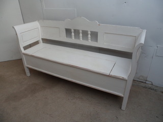 A Quality Painted White Panelled 3 Seater Box Settle / Bench