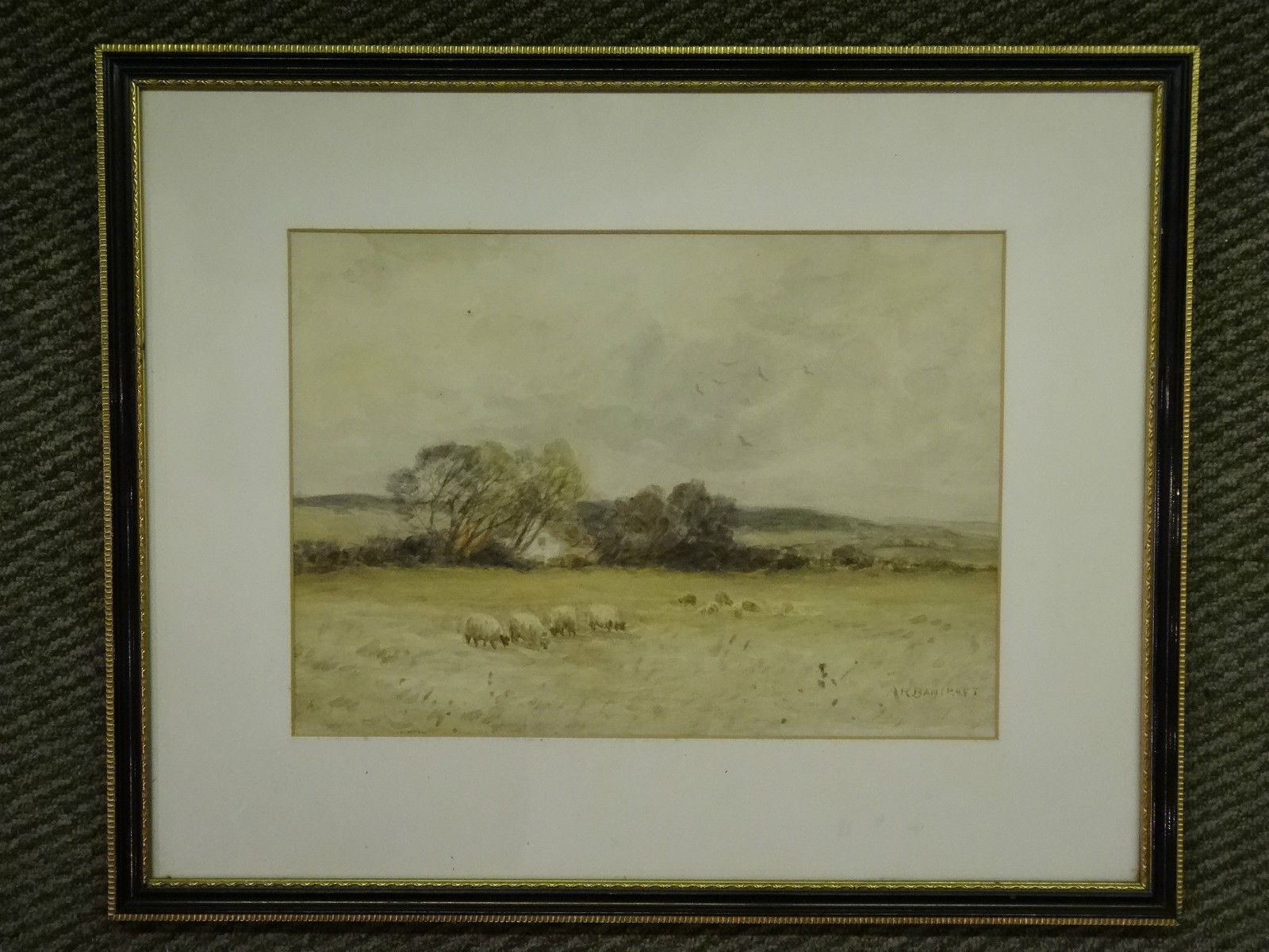 'A R Bancroft' 1920's Farmland Sheep Watercolour Painting (1 of 2)