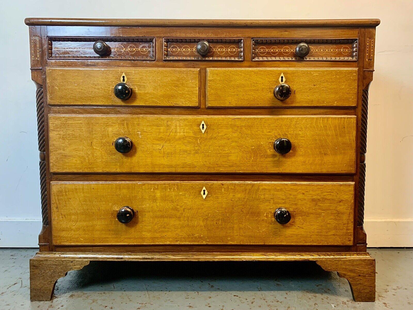 A Rare & Beautiful 180 Year Old Victorian Antique Oak Chest Of Drawers. C 1840