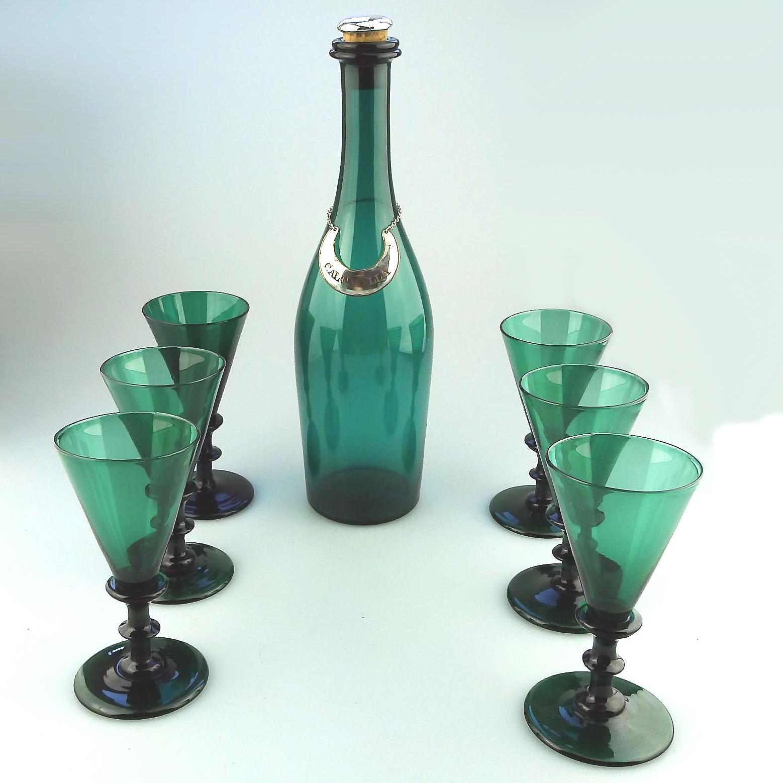 A Rare Bristol Green Glass Calcavella Drinking Set C.19thc