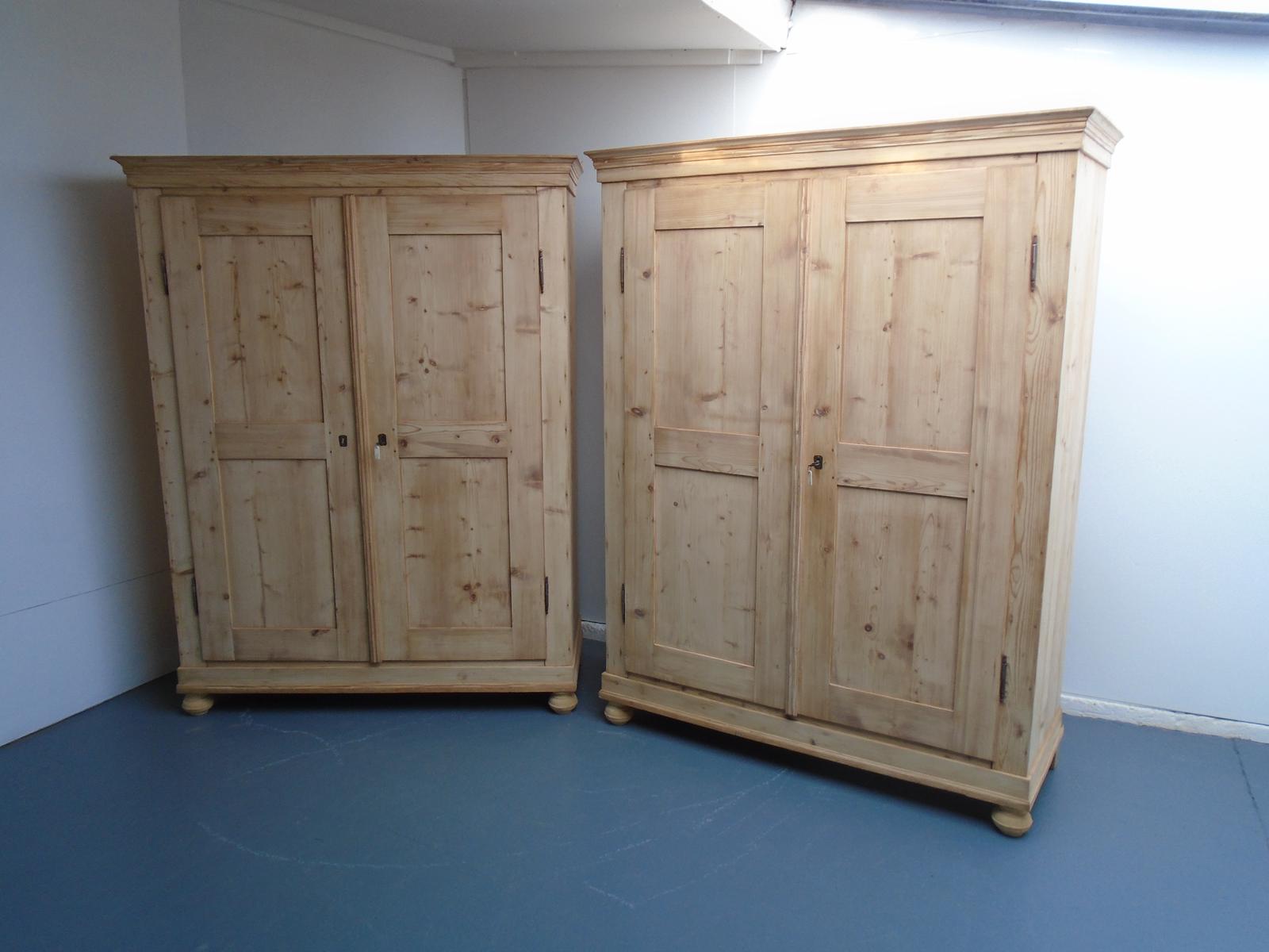 A Rare Pair of Georgian Antique / Old Pine Knockdown Wardrobes to Wax / Paint