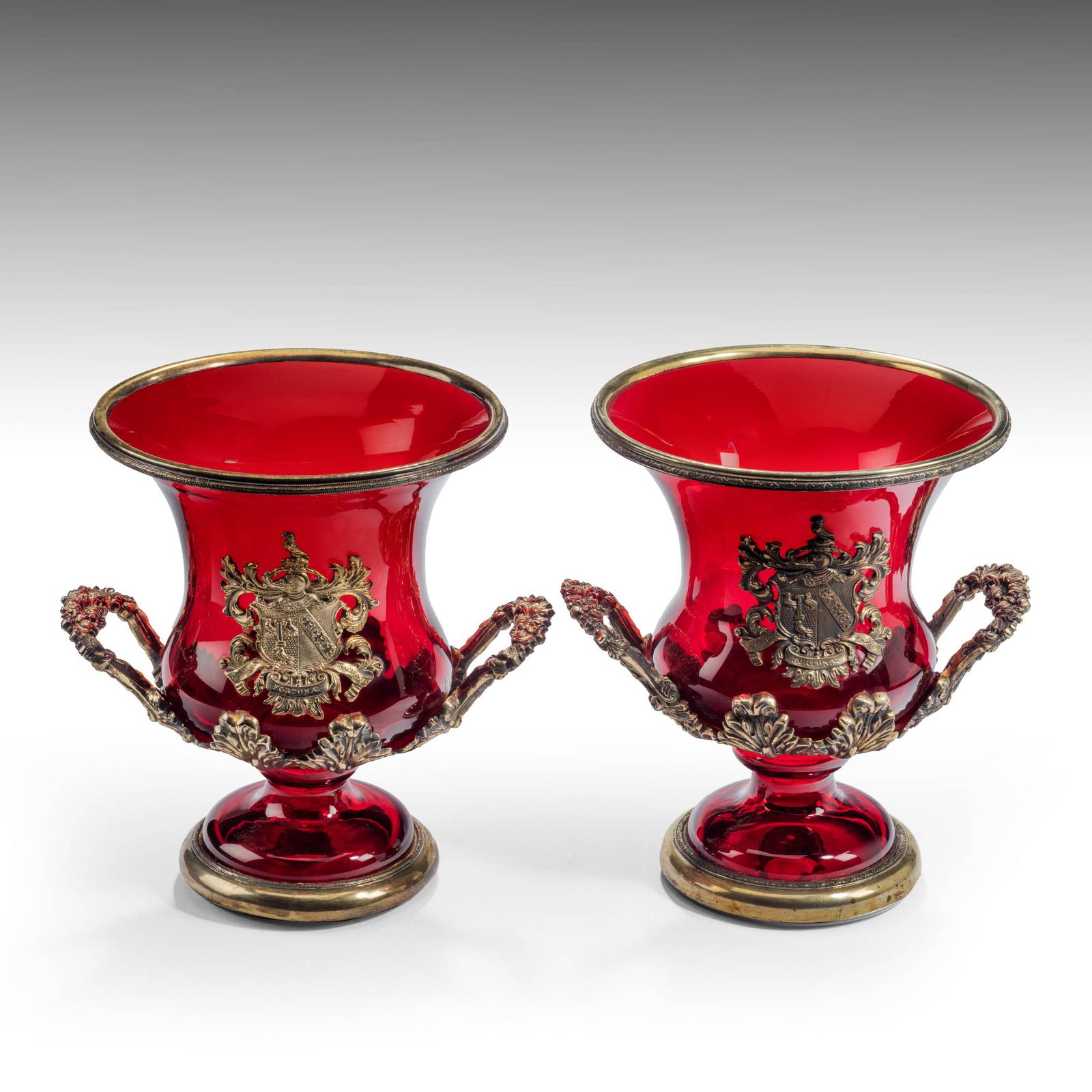 A Rare Pair of Ruby Glass and Ormolu Champagne Coolers
